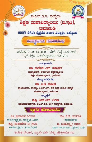 ಕರ್ನಾಟಕದ ಮಾನ್ಯ ರಾಜ್ಯಪಾಲರಿಂದ ರಾಣಿ ಚೆನ್ನಮ್ಮ ವಿಶ್ವವಿದ್ಯಾಲಯಕ್ಕೆ ಪ್ರಥಮ Rank ಪಡೆದಿರುವ , ಬಿ.ಎಲ್.ಡಿ.ಇ ಸಂಸ್ಥೆಯ ಶಿಕ್ಷಣ ಮಹಾವಿದ್ಯಾಲಯ ಜಮಖಂಡಿಯ ಪ್ರಶಿಕ್ಷಣಾರ್ಥಿ ಸಂದೀಪ ತೆಳಗಡೆ ಅವರಿಗೆ ಅಬಿನಂದನೆಗಳು..